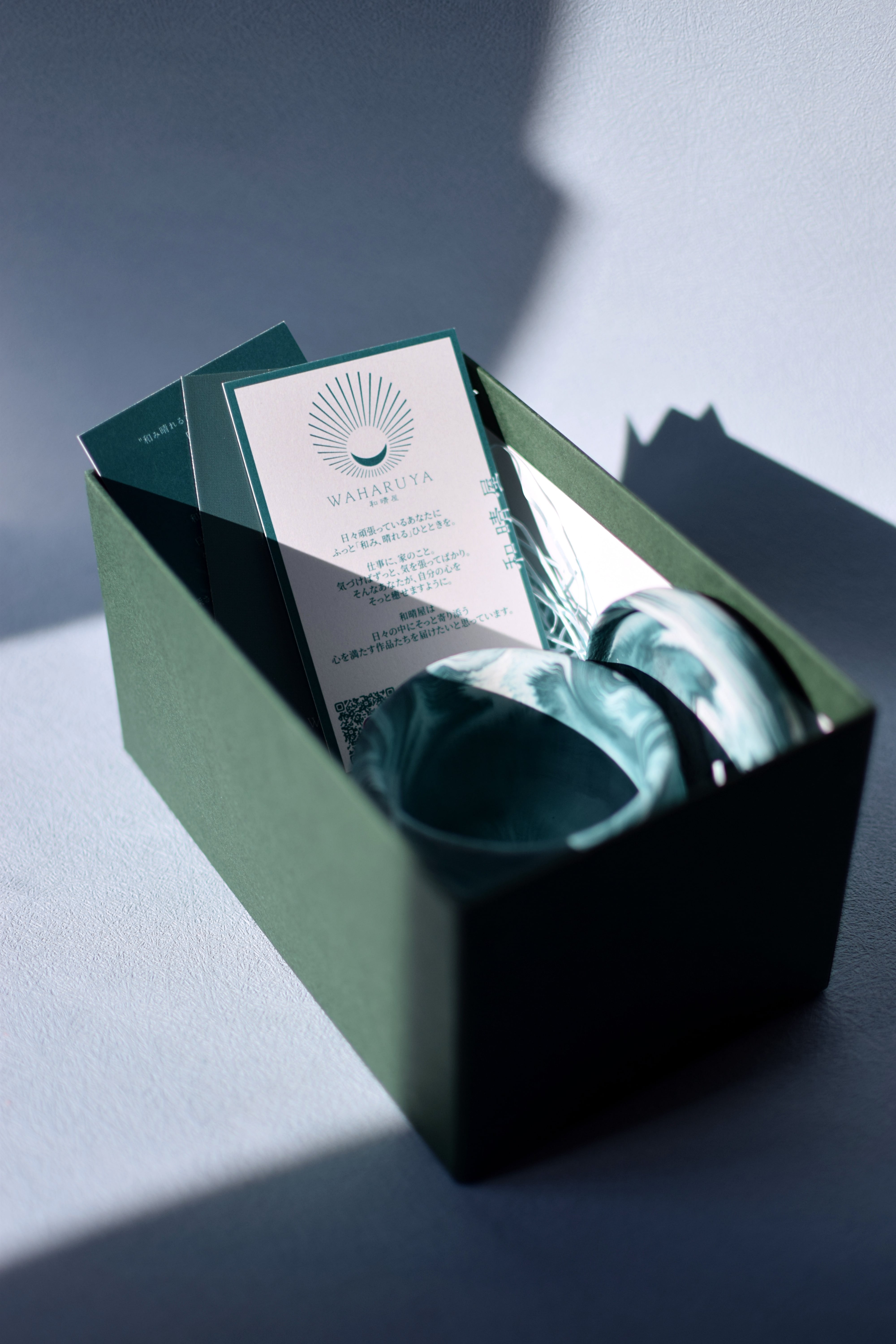 和晴屋のテーマカラーの深藍色と月白色で